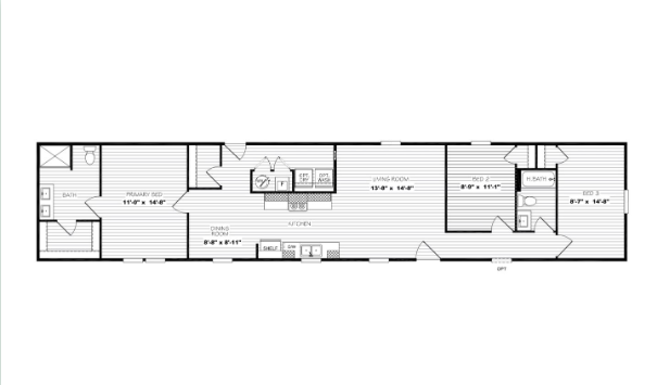 The Clayton Homes Northstar is a 1,140-square-foot manufactured home offering 3 bedrooms and 2 bathrooms, thoughtfully designed for both comfort and convenience. The kitchen features stainless steel appliances, a walk-in pantry, and an additional dining area, making it ideal for family meals and entertaining. The master ensuite includes a double sink vanity for added functionality and space, creating a private retreat within the home. With its smart layout and modern touches, the Northstar combines style and practicality for everyday living.